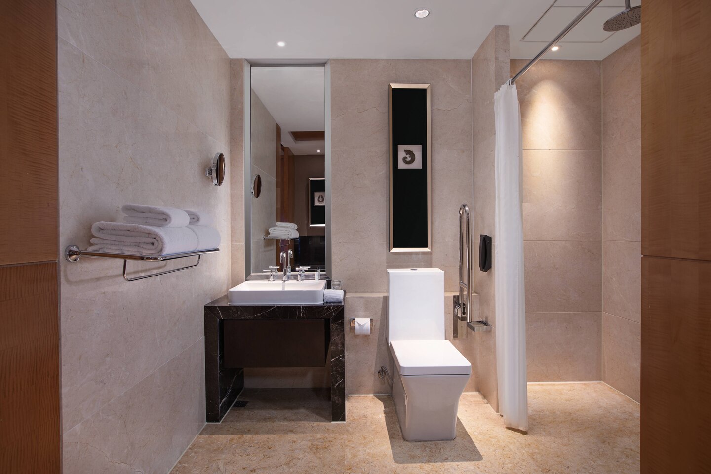 客房裝飾優(yōu)雅,配備高品質(zhì)設(shè)施,為您帶來別樣休閑享受,落地窗確保自然采光充足,并可飽覽蘇州迷人全景,所有客房均配備平面電視、迷你吧、咖啡機(jī)和時(shí)尚雅致的大理石浴室。