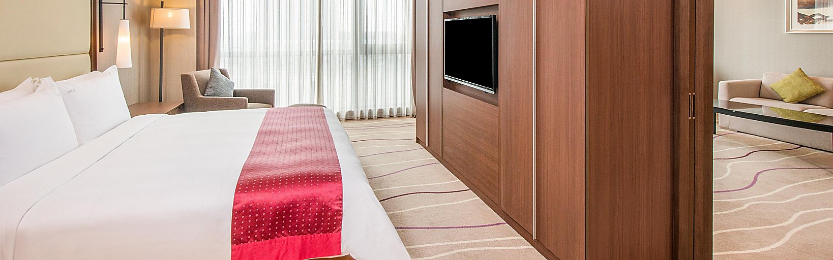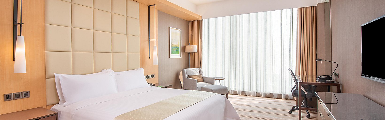 酒店擁有310間客房,假日酒店行政樓層客房寬大的辦公區(qū)域配備人體工程學座椅,高速網(wǎng)絡(luò)接口。