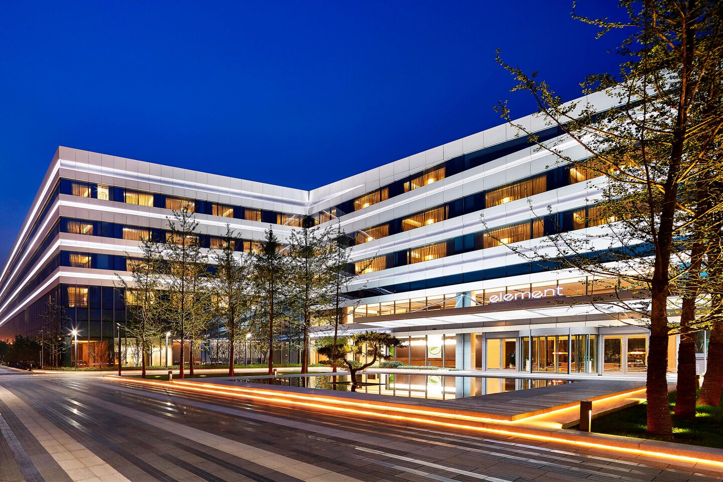 進(jìn)入大堂后,通過(guò)激光燈照射在地面上,綠色的element清晰可見(jiàn)。雖然是中端品牌,但酒店的服務(wù)延續(xù)喜達(dá)屋的高水準(zhǔn)。