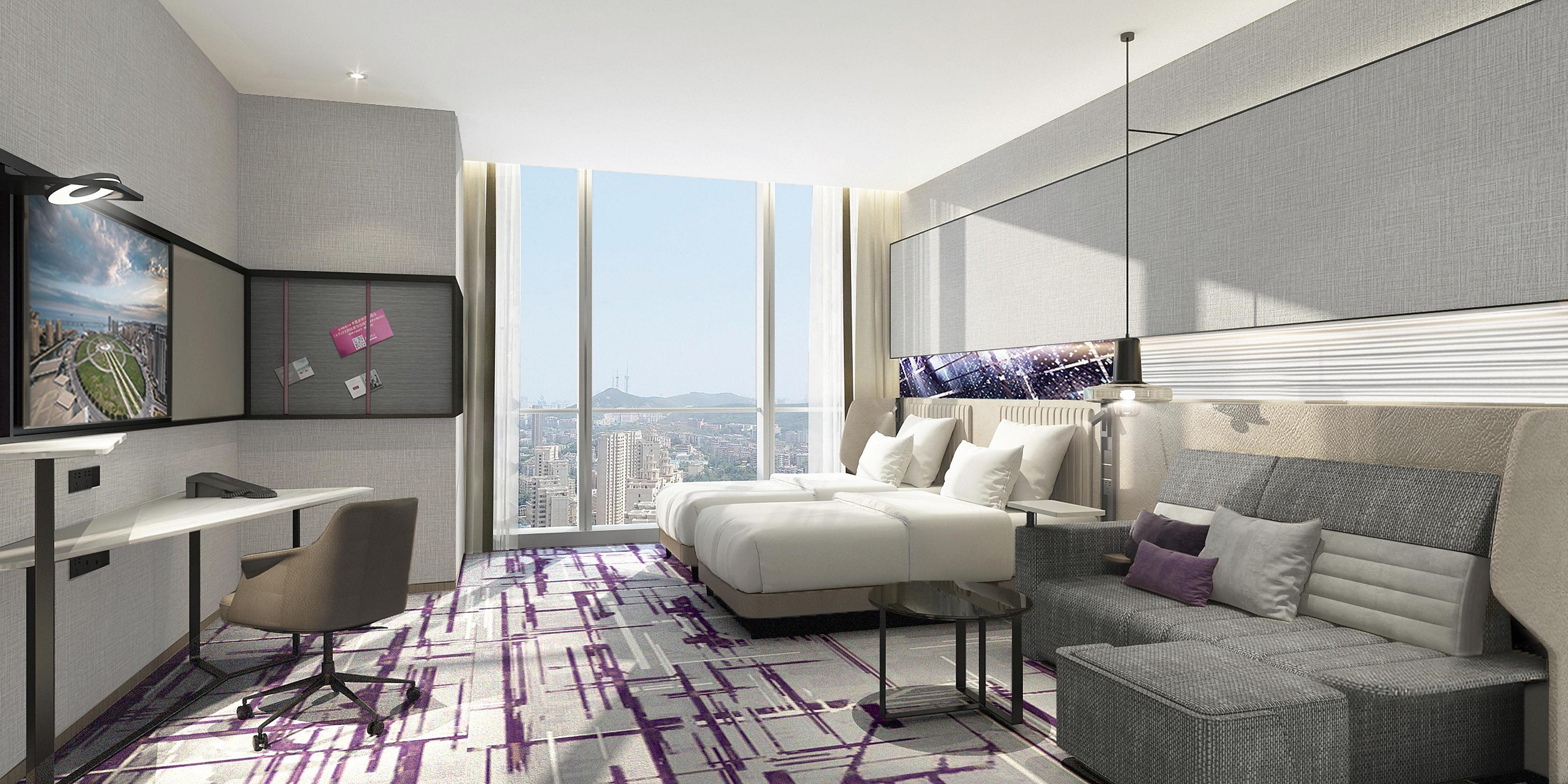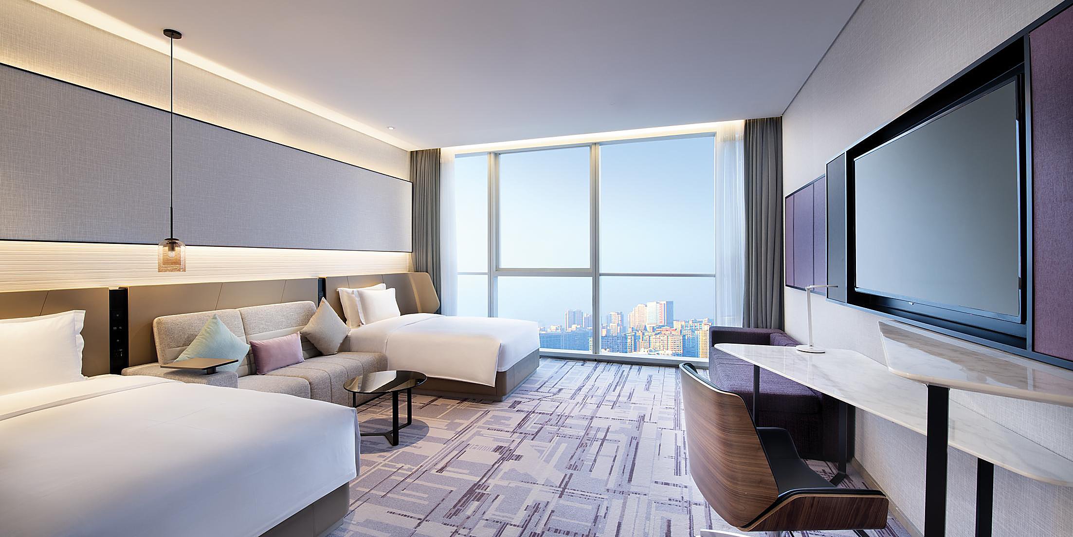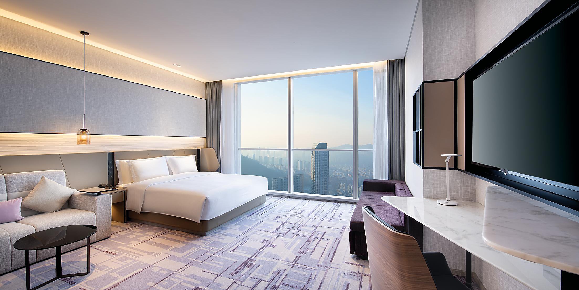 酒店設(shè)有300間摩登雅致的客房及套房。透過寬大的落地玻璃窗,眺望城市與遠(yuǎn)山近海相連。