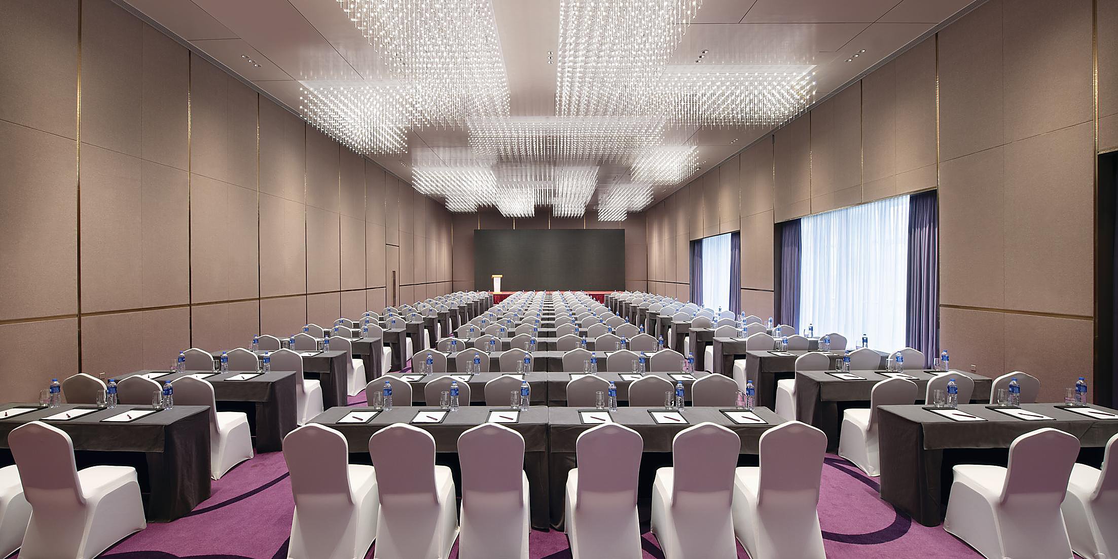 酒店1000多平方米的多功能會議場地包含一間550平方米無柱皇冠大宴會廳和四間多功能廳。