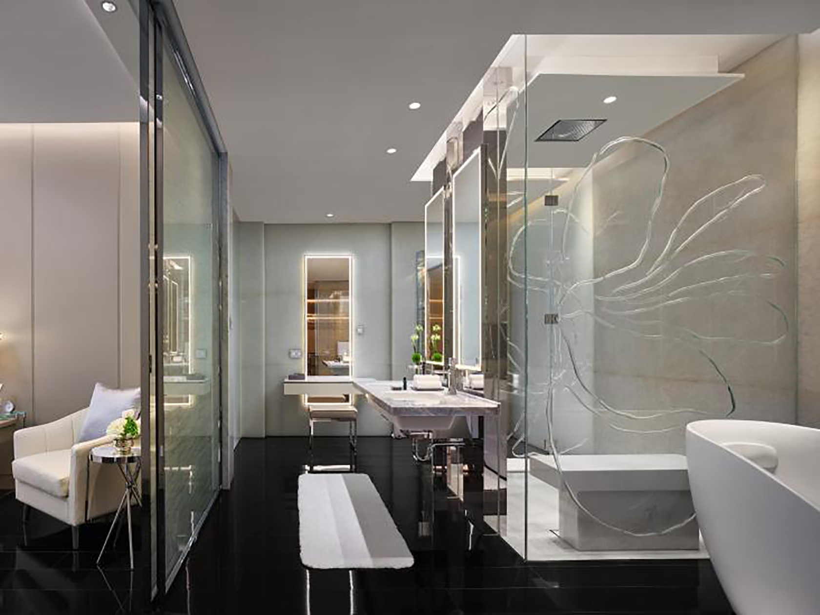 面積從62平方米至380平方米不等,是上海最高最大的客房之一。