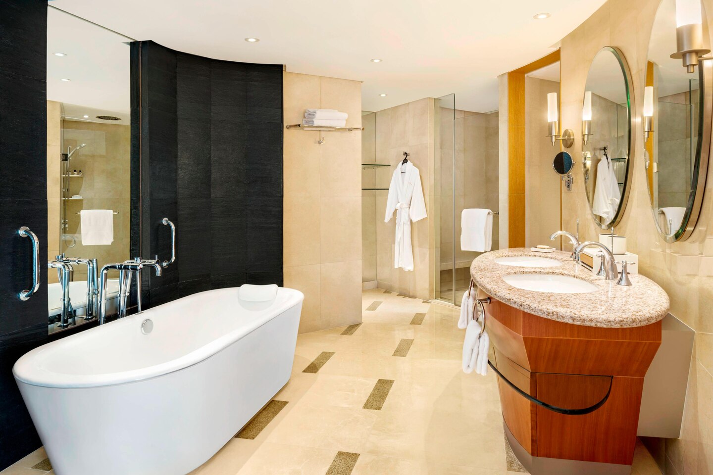 超大客房和套房配備豪華寢具、時(shí)尚浴室和私人陽(yáng)臺(tái)。