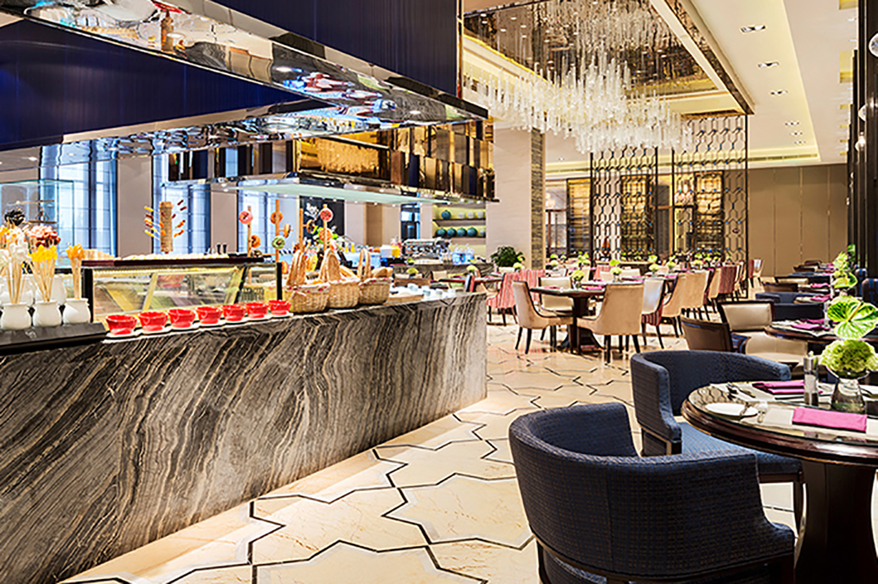 美食匯全日餐廳擁有時(shí)尚的裝飾風(fēng)格,別致的開(kāi)放式廚房。