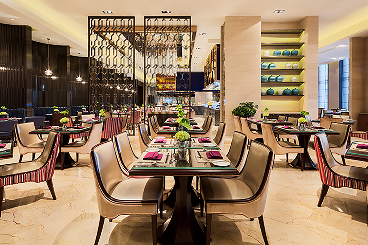餐廳全天提供早餐、中餐、晚餐單點(diǎn)菜肴以及中西融合的自助早、晚餐。