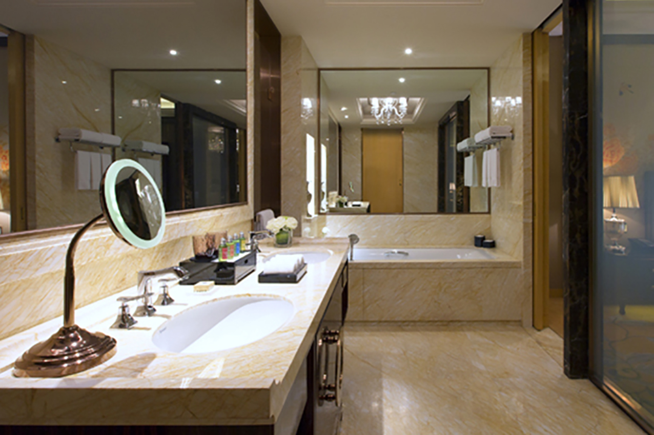 寬敞奢華的浴室設(shè)有獨立式浴缸及熱帶雨林式淋浴設(shè)施,配合豪華洗浴用品,打造怡人沐浴享受。