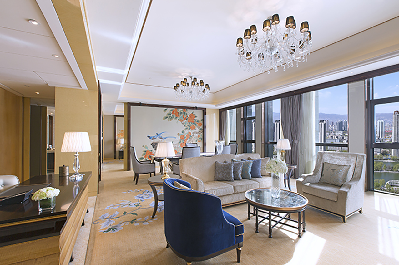 房間內(nèi)的落地玻璃窗打造開闊視野,無與倫比的城市風(fēng)光或秀麗湖景盡收眼底。