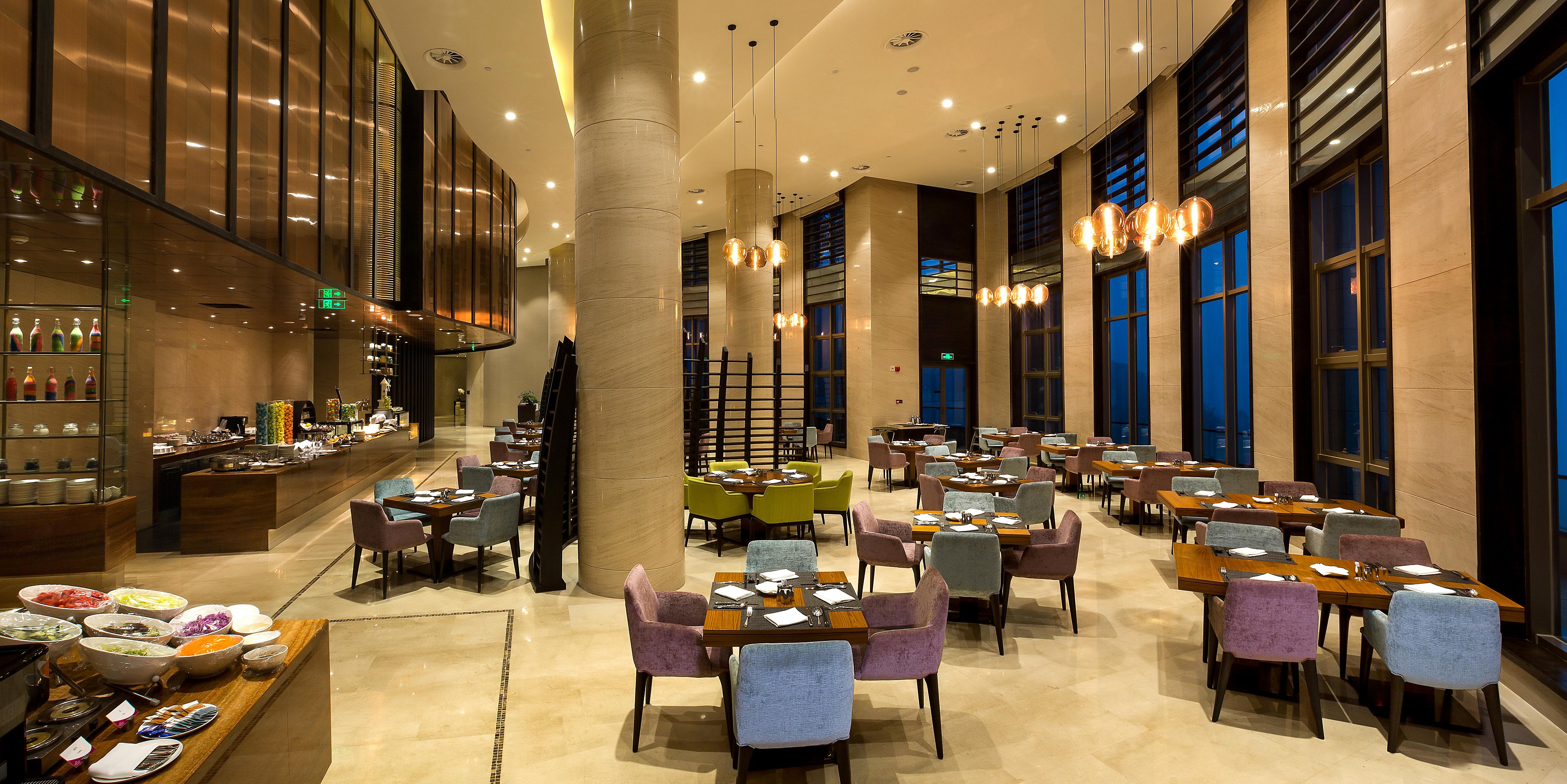 酒店擁有2個(gè)餐廳和2個(gè)酒吧,各具風(fēng)格,并提供各種國(guó)際美食、精品粵菜及巴渝特色菜肴。