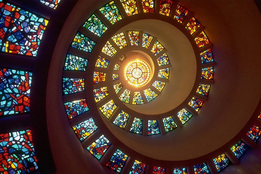 首先,需要畫一幅較小的彩色玻璃草圖——通常是水彩畫,讓酒店客戶確認,然后再畫出全尺寸的圖樣或底圖,用以說明酒店彩色玻璃的形狀、色調(diào)以及用于固定玻璃的鉛條的位置。然后從底圖上取下圖案,放置在有顏色的窗玻璃或白玻璃上,再對圖案進行裁剪。接著,可能會在一部分玻璃上繪制圖像,并放在窯中燒烤,使圖案與玻璃融合。然后呢,將玻璃嵌入鉛條槽(即鉛欞)中,接著對接頭處進行焊接。鉛封的玻璃分塊組裝,以便搬運。最后,將每一塊玻璃安裝到業(yè)已設(shè)計位置的的鐵柵欄或支撐架上。鉛條和支架形成的幾何圖樣是酒店彩色玻璃總體設(shè)計的一部分。