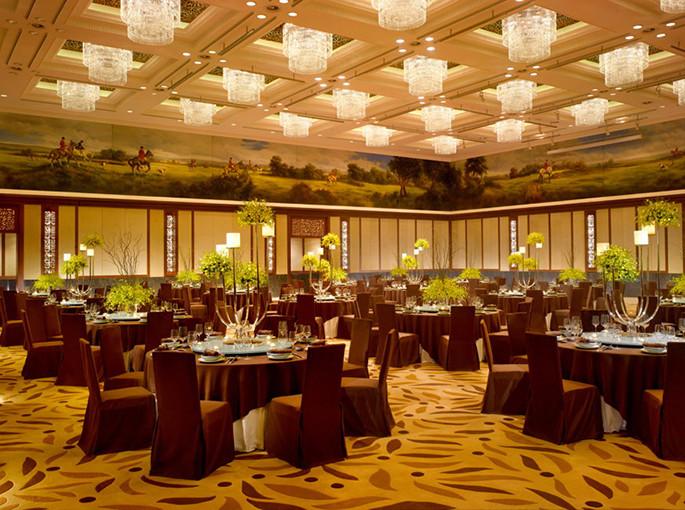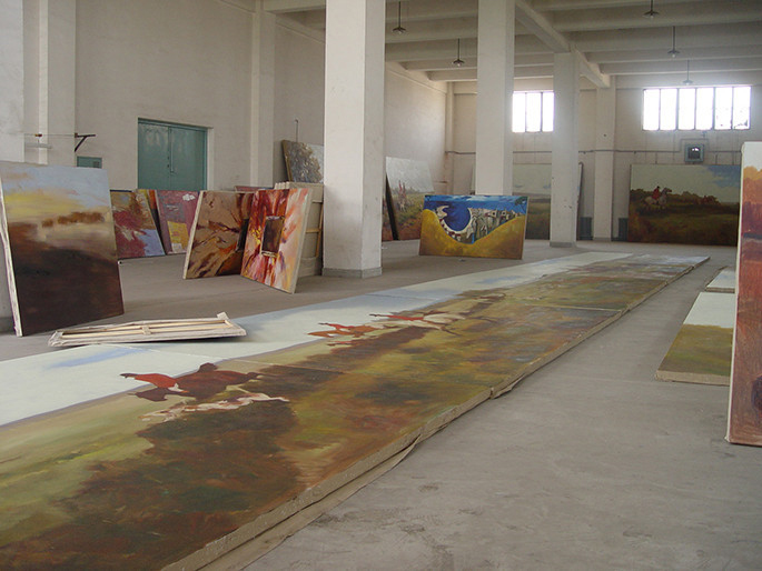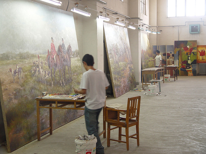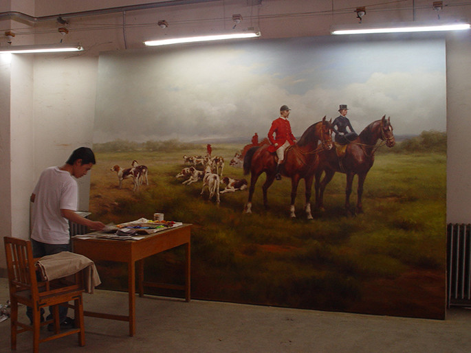 51A設(shè)計(jì)機(jī)構(gòu)2004年設(shè)計(jì)制作的宴會(huì)廳大型手繪油畫(huà),采用架上油彩顏料直接畫(huà)法,完成后運(yùn)抵現(xiàn)場(chǎng)再做拼接鑲嵌安裝;保證工期要求的同時(shí),滿(mǎn)足了凱悅酒店的高品質(zhì)需求。