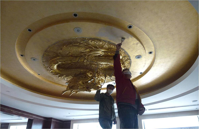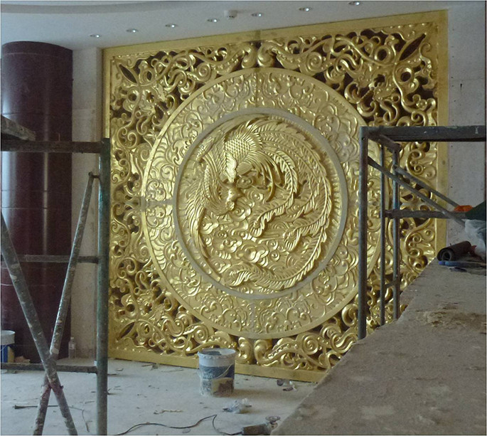 51A設(shè)計機構(gòu)2012年9月承接的河北承德嘉和國際酒店位于承德市雙橋區(qū)迎賓路23號,為五星級度假酒店。51A設(shè)計在尊重酒店管理公司與業(yè)主相關(guān)意向的前提下,對酒店龍鳳餐廳的“鳳”浮雕“龍”圓雕進行了設(shè)計規(guī)劃。51A設(shè)計機構(gòu)規(guī)劃設(shè)計的龍鳳餐廳浮雕及圓雕,為了控制成本,浮雕圓雕的胚體采用玻璃鋼材質(zhì),面層采用真金箔貼金工藝;成品效果金碧輝煌,既完全反映業(yè)主對其龍鳳會所“尊貴唯一”的功能空間定位,又規(guī)避常規(guī)五星級酒店裝飾藝術(shù)品的風(fēng)格所呈現(xiàn)的“千人一面”的特質(zhì),符號性強識別性強,給人留下深刻印象。