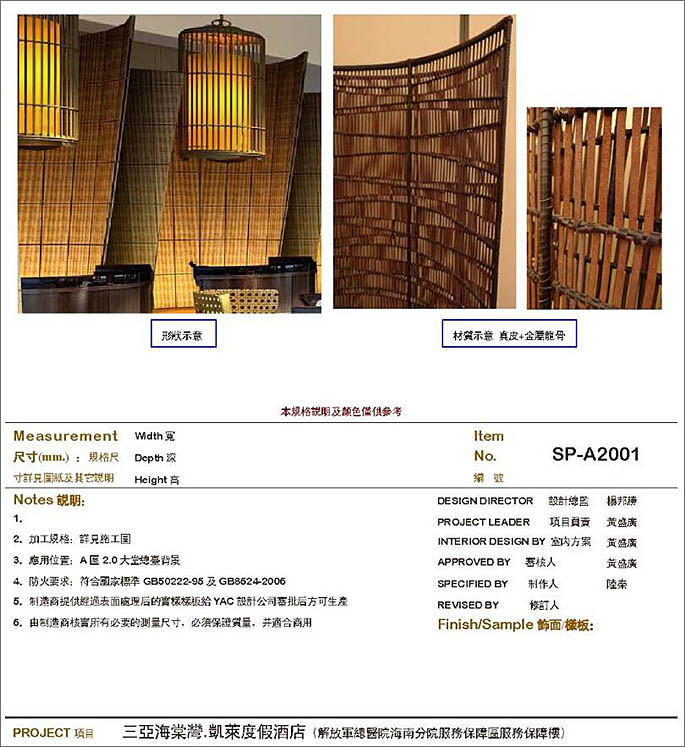 酒店裝飾屏風(fēng)小樣測(cè)試